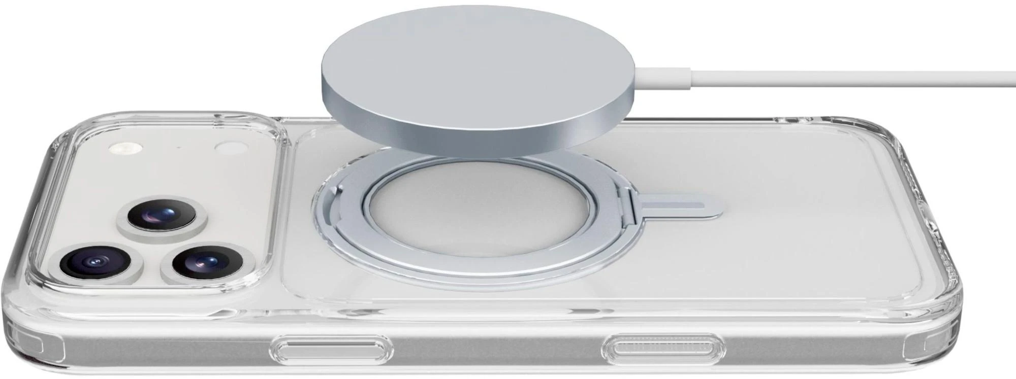 SPINMAG ist das transparente Etui mit drehbarem Standring, das mit dem MagSafe-Ökosystem vollständig kompatibel ist. Sein innovatives Design umfasst einen um 360° drehbaren Ring, der mehrere Funktionen bietet, wie z. B. die Möglichkeit, sich in einen Ständer oder Standfuß zu verwandeln. Der integrierte Ring wird zu einem festen Bestandteil des Gehäuses, wenn es nicht benutzt wird, und ist somit vollständig mit MagSafe-Zubehör kompatibel. Die erhöhten Ränder um das Display und die Kamera bieten zusätzlichen Schutz vor versehentlichen Stößen und Stürzen.