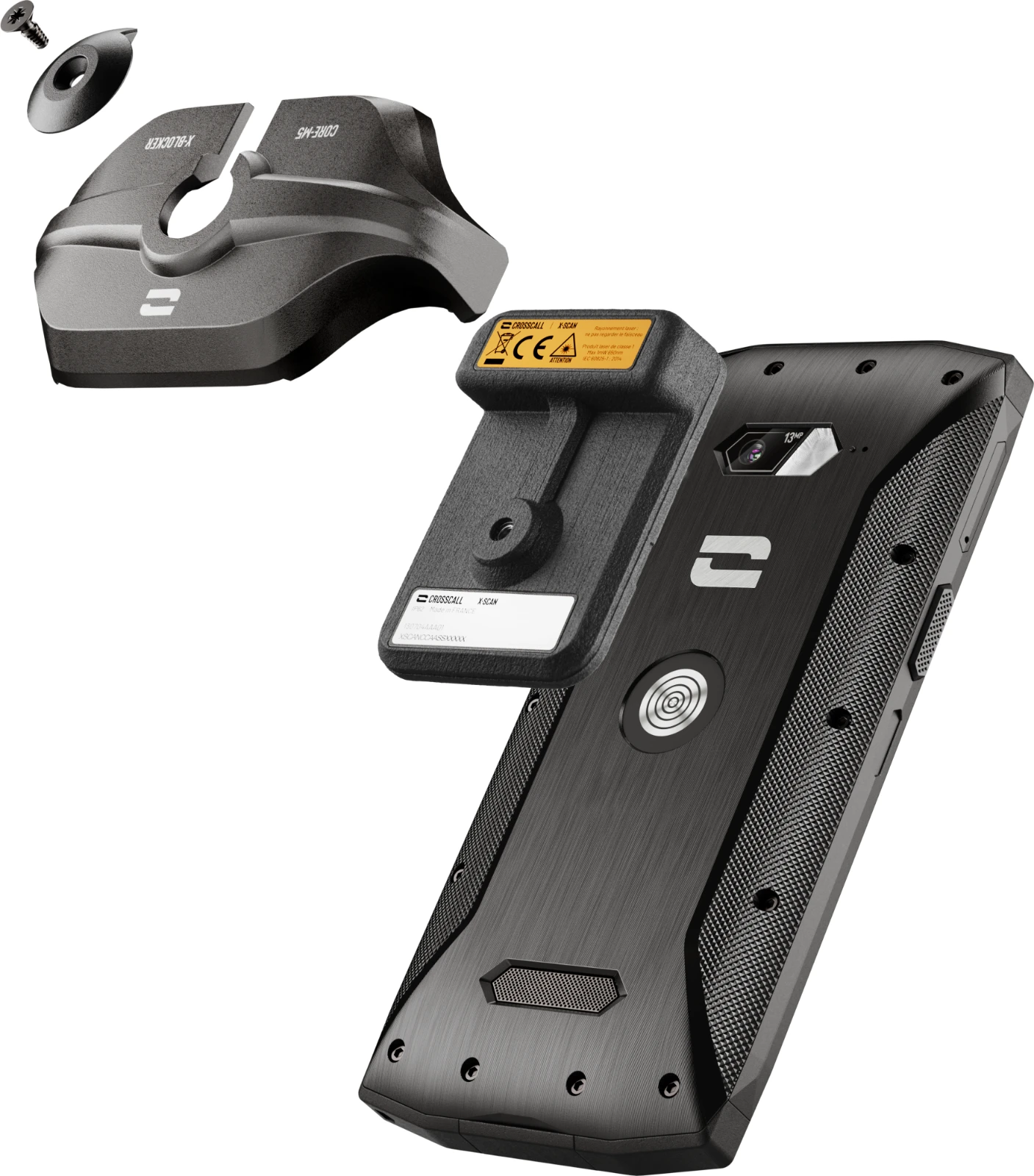 Der französische Hersteller Crosscall, Spezialist für extrem robuste Smartphones und Tablets, hat sich mit einem Experten für automatische Identifikation zusammengeschlossen, um X-SCAN zu entwickeln: Dieses optische Scannermodul wird auf der Rückseite Ihres Smartphones angebracht und verwandelt es in einen zuverlässigen und leistungsstarken mobilen Scanner.